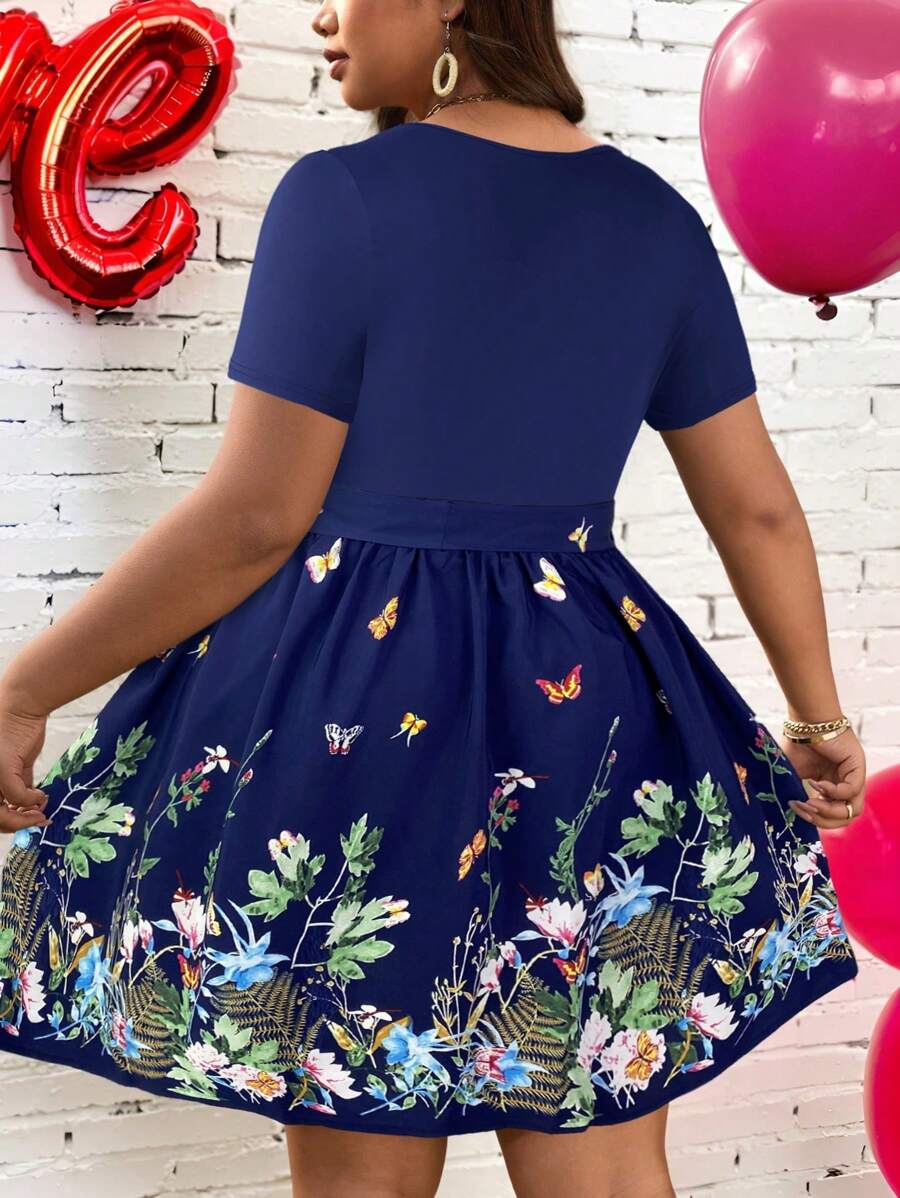 Rochie Scurta Uma Bleumarin cu Print Multicolor – Marimi Mari