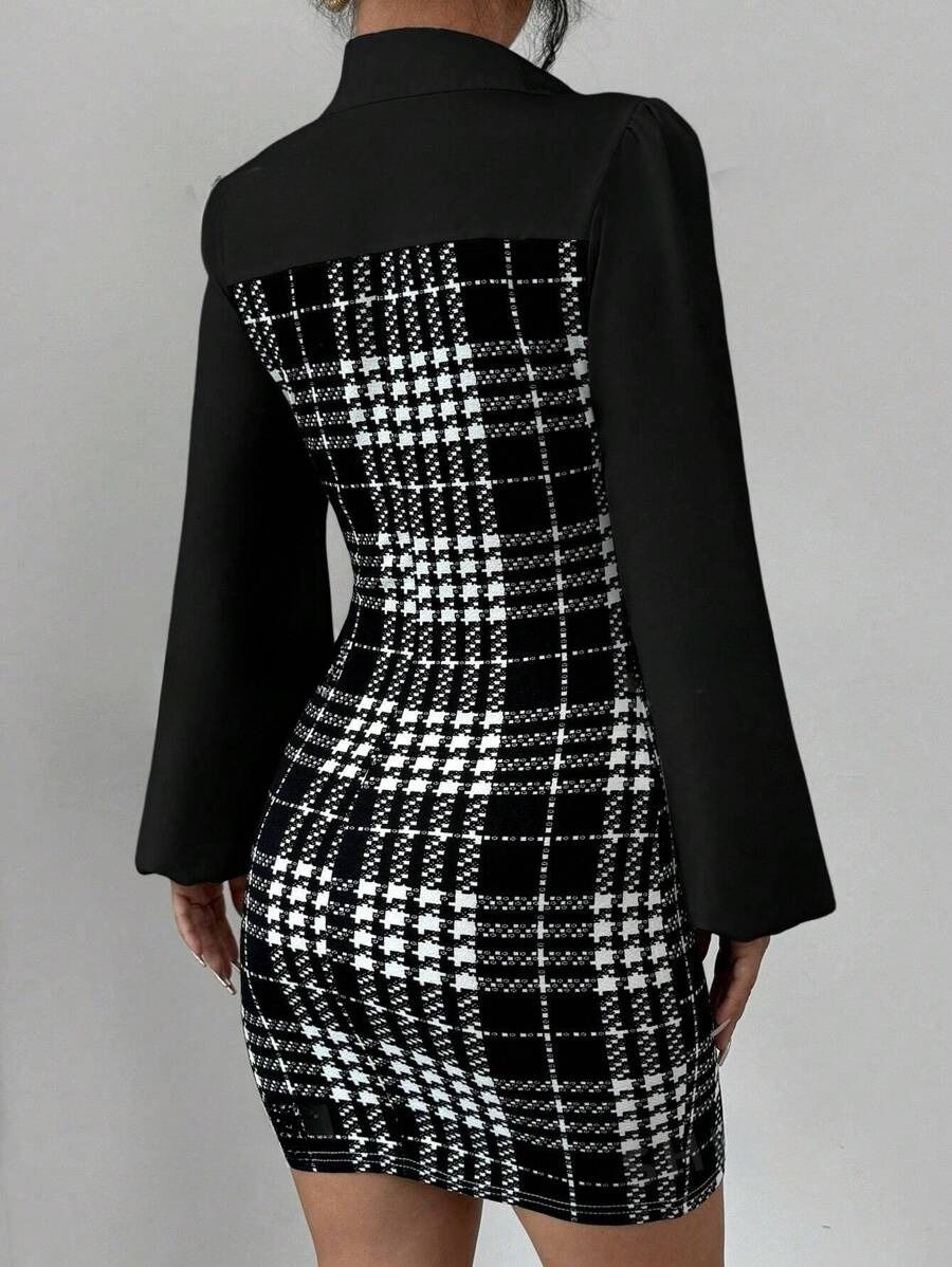 Rochie Scurta Zeida Neagra cu Print Geometric Alb