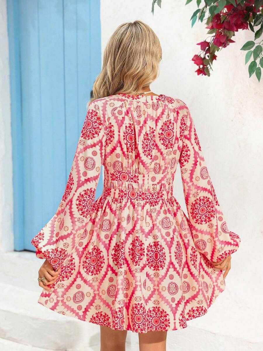 Rochie Scurta Zorah Alba cu Print Roz