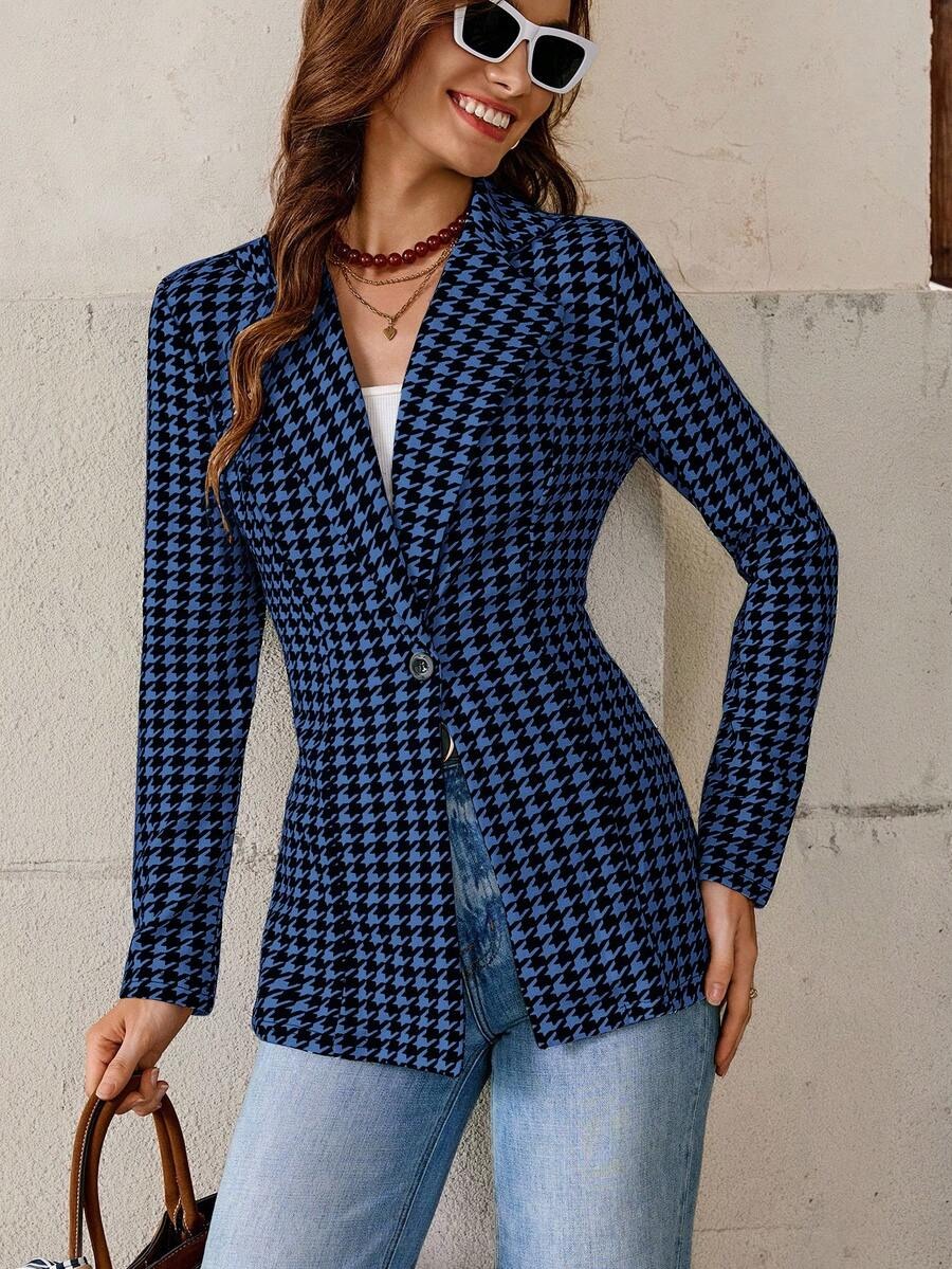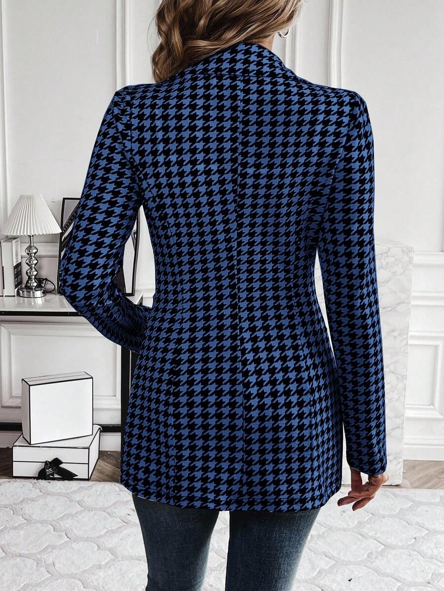 Sacou Dama Bruna Albastru cu Print Geometric Negru ( fara captuseala )
