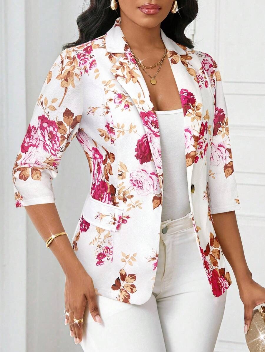 Sacou Dama Estera Alb cu Print Floral Roz ( fara captuseala )