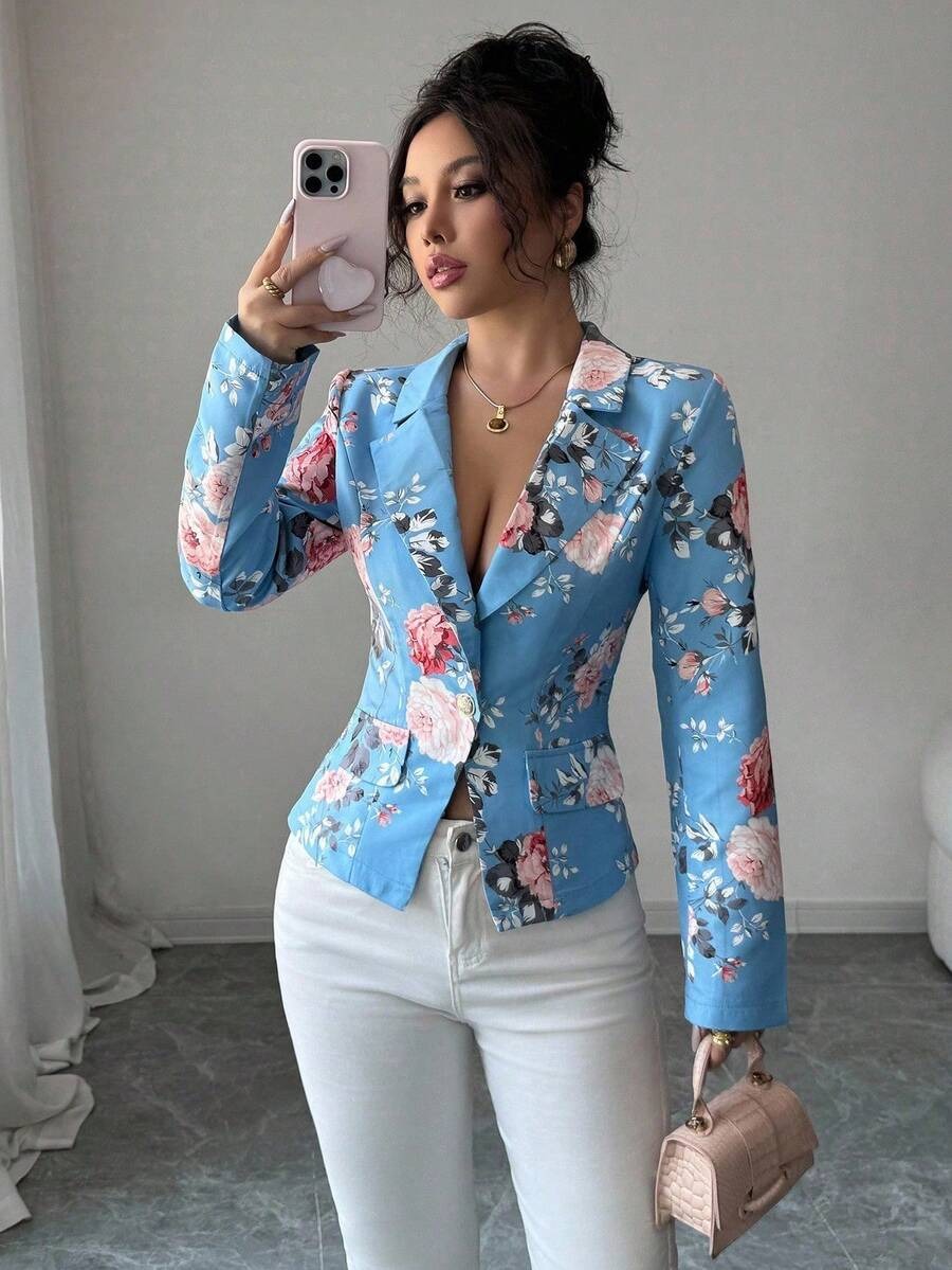 Sacou Dama Evelyne Bleu Inflorat ( fara captuseala )