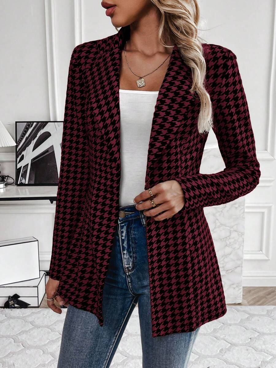 Sacou Dama Ruana Grena cu Print Geometric Negru ( fara captuseala )