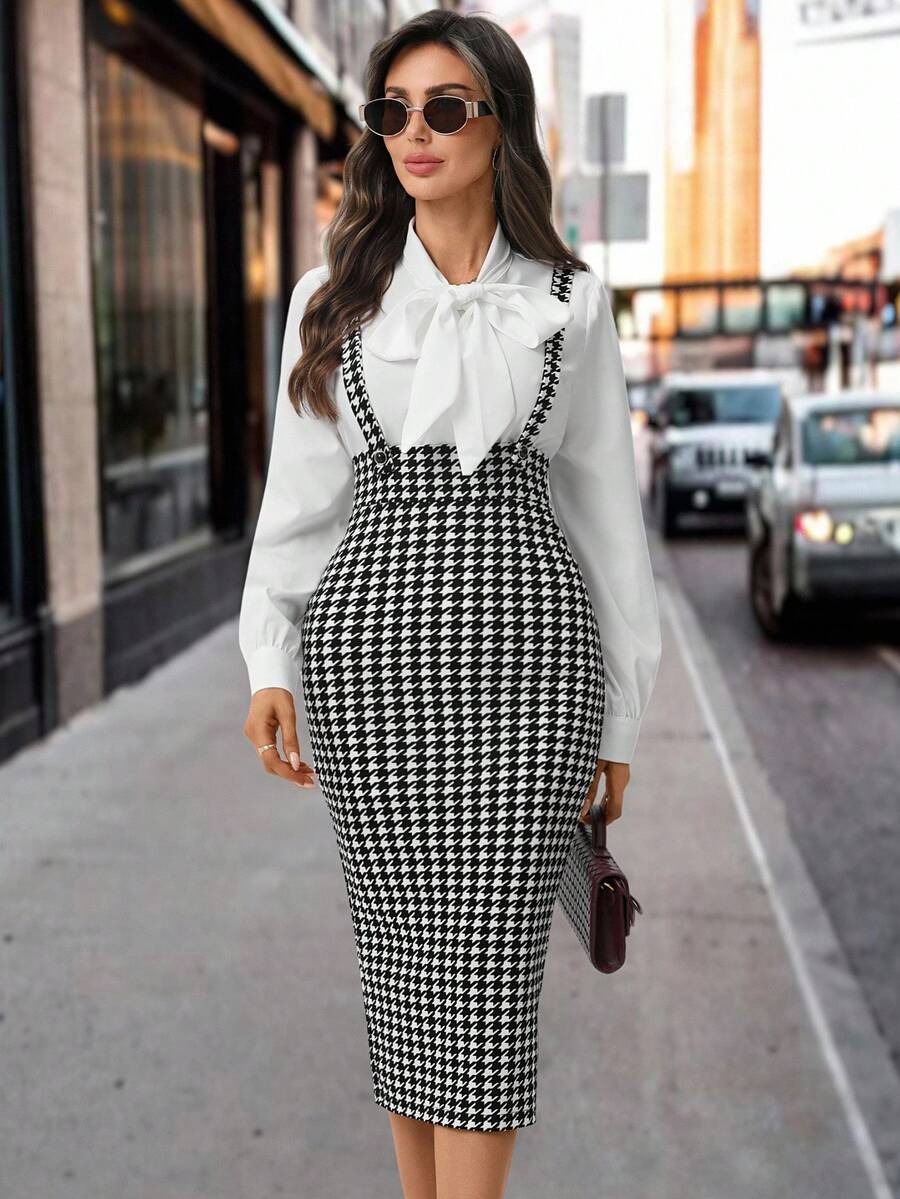 Sarafan Elsa Negru cu Print Geometric Alb ( fara camasa )