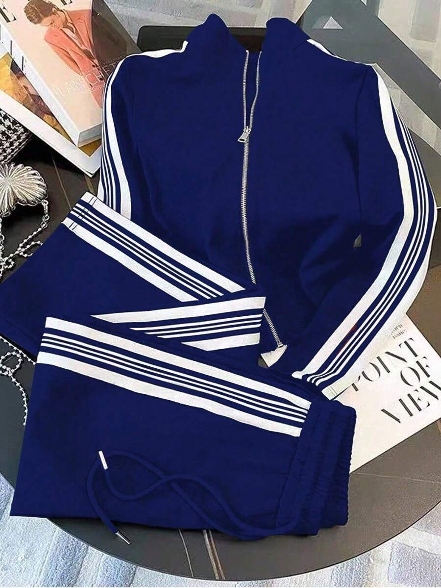 Trening Dama Jari Albastru cu Dungi Albe