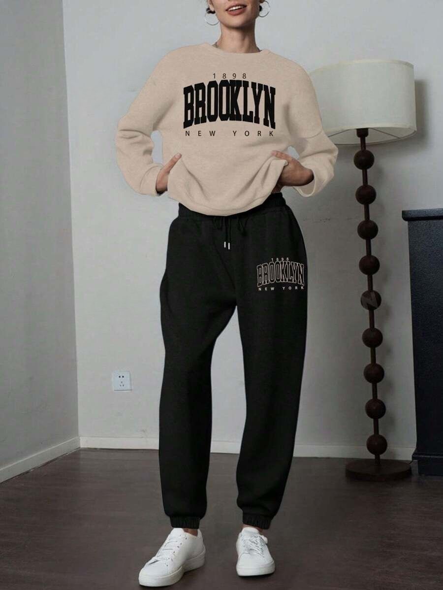 Trening Mara format din Pantalon Negru si Bluza Crem