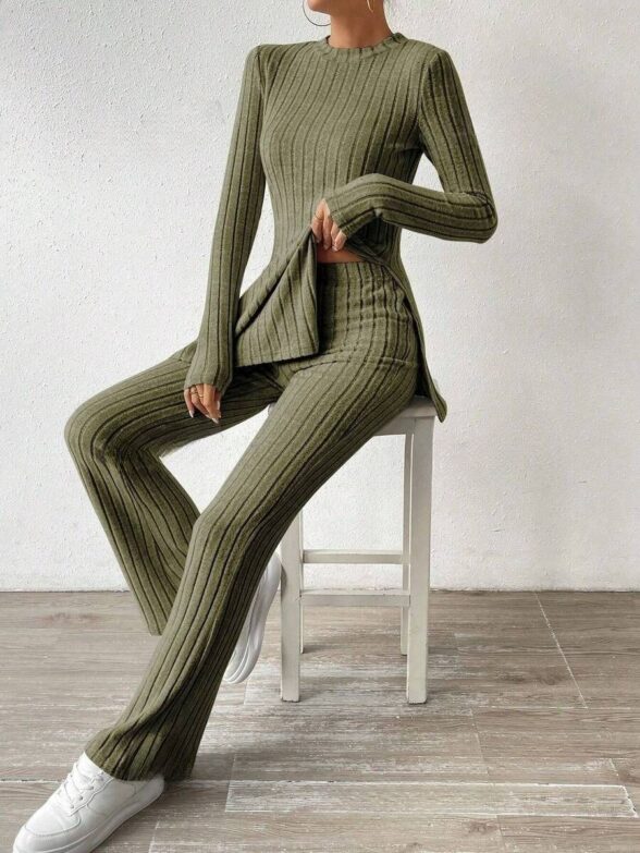 Compleu Tricotat cu Pantalon Petra Verde