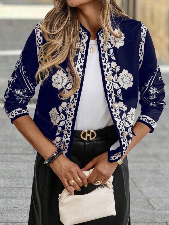 Jacheta Dama Dalia Bleumarin cu Print Alb ( fara captuseala )