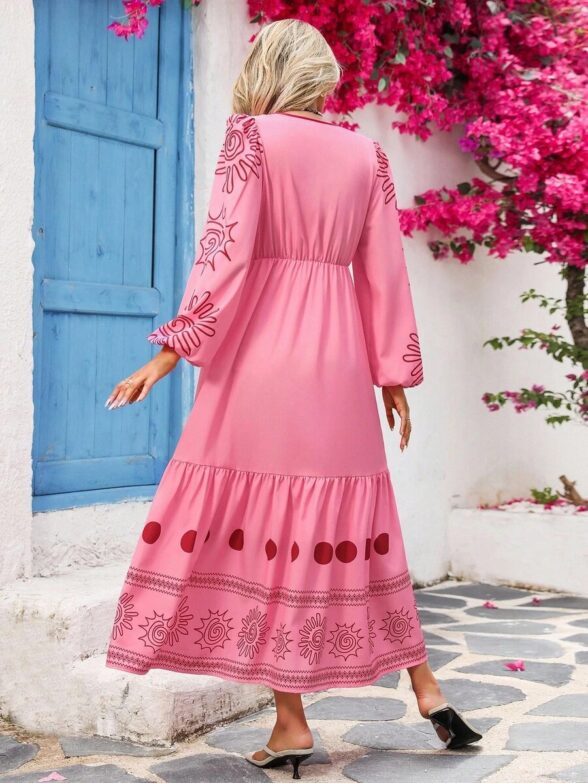 Rochie Lunga Zelda Verde cu Model Multicolor