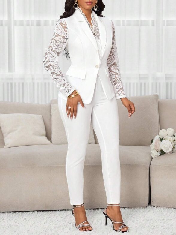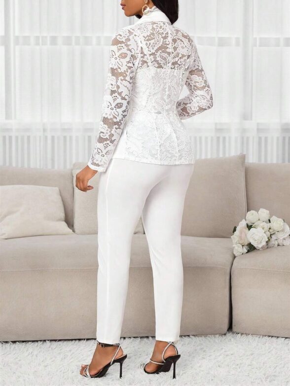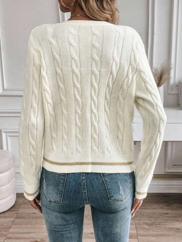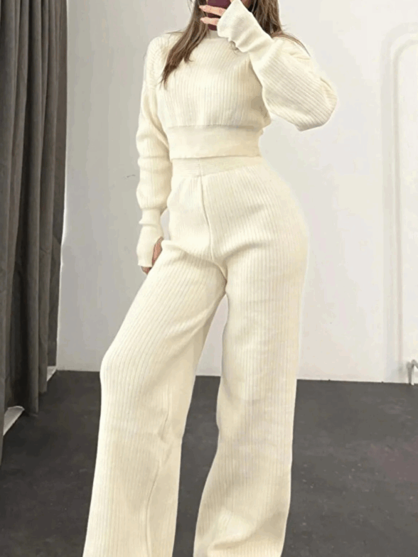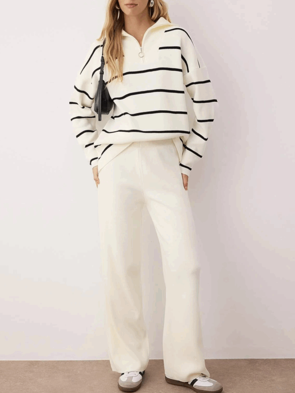 Compleu Tricotat cu Pantalon Viorela Alb cu Dungi Negre