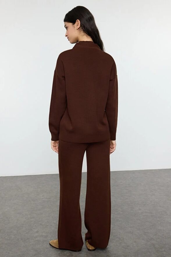 Compleu Tricotat Coralina Maro format din Pantalon, Cardigan si Bluza